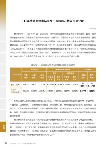111年度總額協商結果及一般服務之地區預算分配
