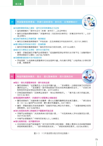 • 醫院及西醫基層總額編列「新醫療科技(包括新增診療項目、新藥及新特材等)」合計