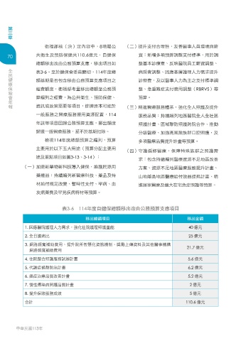 70 共衛生及預防保健共110.6億元,自健保 資:新增多項預算調整支付標準,用於調